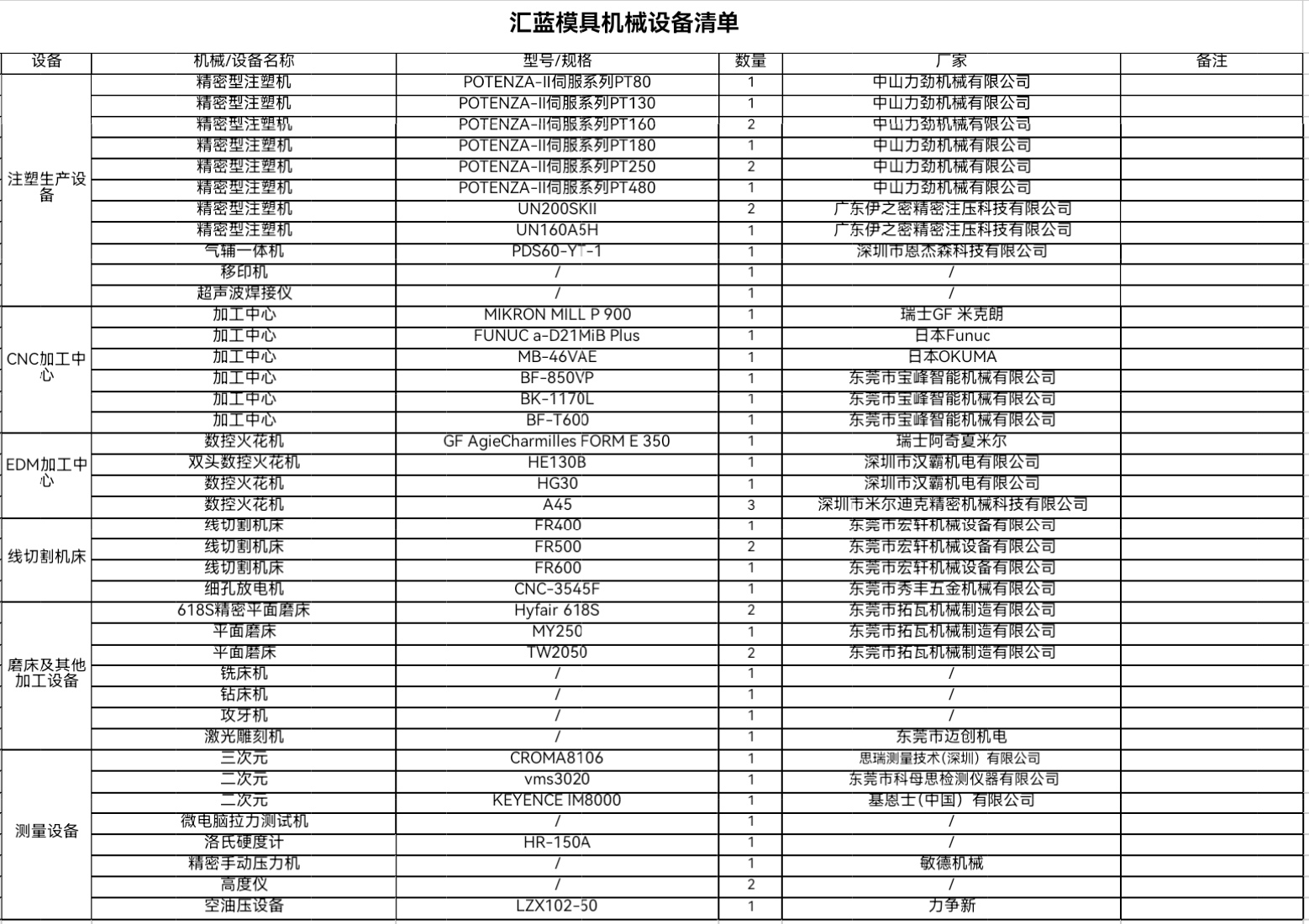 设备清单